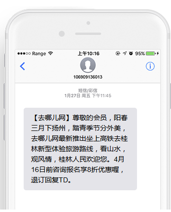 4渠道推廣企業在推廣產品或服務時,通過具有競爭性、刺激性的短信內容吸引新老顧客關注和決策,進而提升渠道推廣的效率。